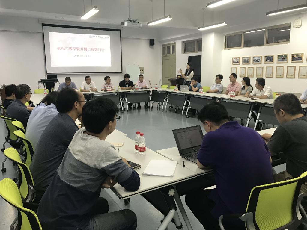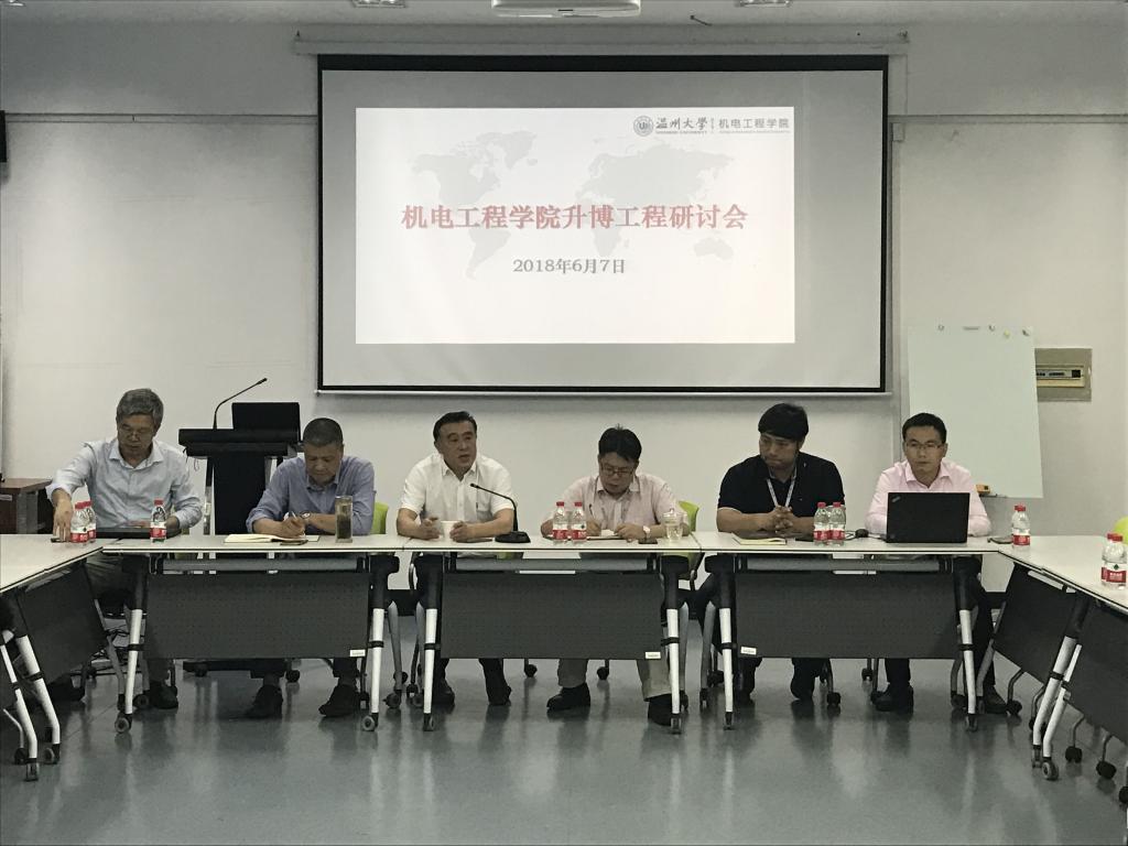2018年6月7日下午,彩票平台 在6B201会议室召开“机械工程学科‘升博’行动计划”工作研讨会。温州大学副校长薛伟、学院领导班子成员、高级职称及博士学位的骨干教师代表参加了会议,会议由院长周宏明主持。