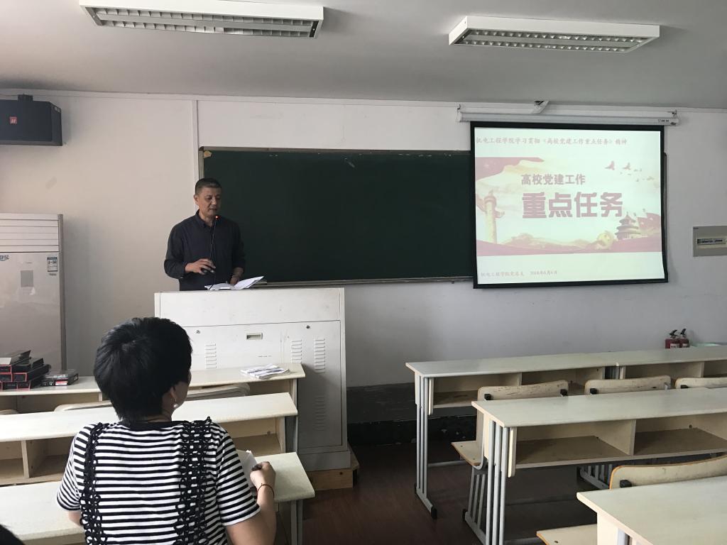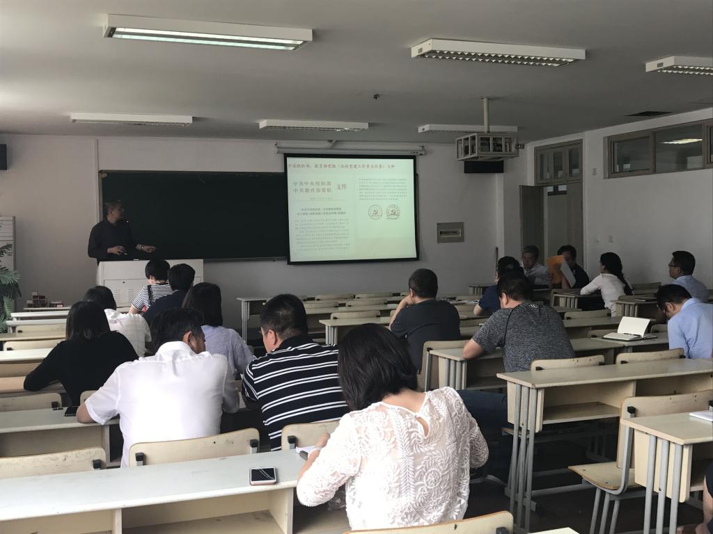 2018年6月6日下午,彩票平台 党总支在6A503组织召开党员学习会——传达《高校党建工作重点任务》通知精神。学院全体教工党员参加了学习会,党总支书记周荣主持学习。