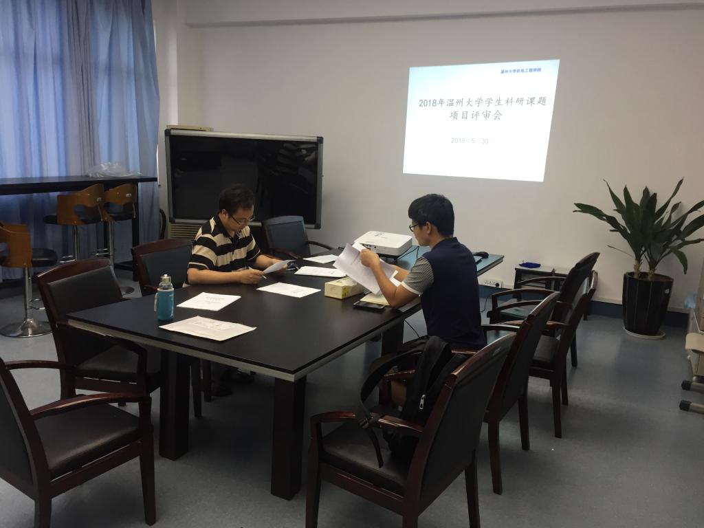 5月30日下午,彩票平台 各系代表周晨老师、周余庆老师、周建锡老师在院B301会议室召开院级学生科研课题立项评审会,杨奇老师主持会议。