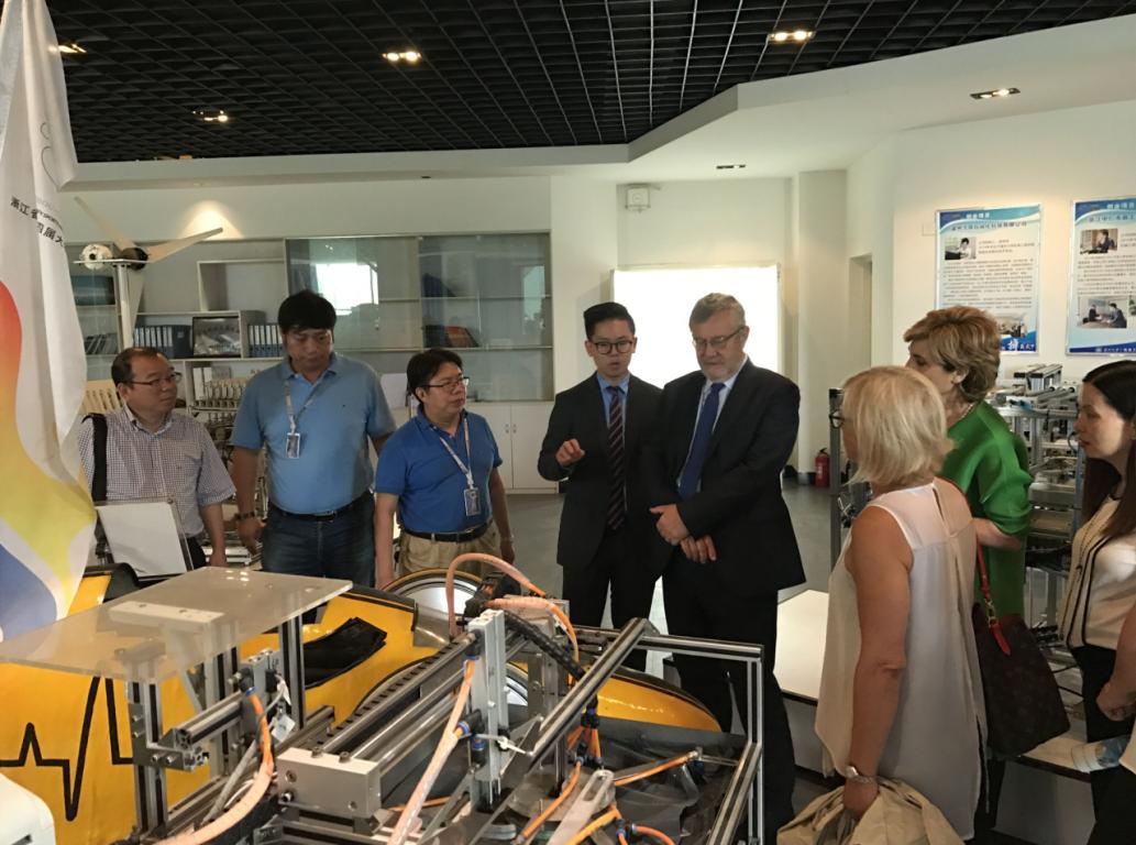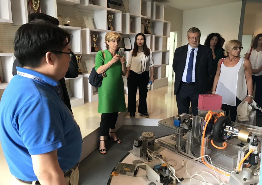 2018年5月28日,意大利伦巴第大区及拉齐奥大区教育厅厅长Dott. Gildo De Angelis博士、意大利教育部人力资源部部长Dott.ssa Paola Pinto博士一行十人来访彩票平台 参观交流。学院院长周宏明、副院长姜锐、办公室副主任徐雅、实验教学中心副主任王晓倩、外事专员李舒琦陪同参观并交流。