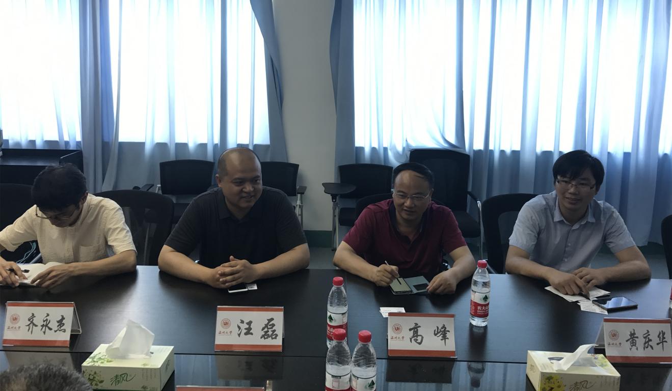 2018年5月16日上午,浙江广厦建设职业技术学院信息与控制工程学院院长汪磊一行四人来访我院交流学习实验室建设经验。学院院长周宏明、党总支书记周荣、副院长姜锐、国际化教学部主任陈希章、实验教学中心副主任王晓倩、工程训练中心副主任潘敏辉接待并参加交流会。