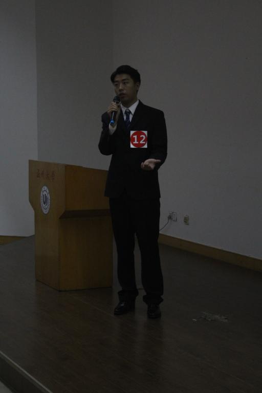 比赛开始前,主持人介绍了本次比赛的评委,他们是来自商学院资深学长,现任交通银行信河支行信贷主管的缪克昌先生,彩票平台 学生科老师杨奇老师,校就业处周志明老师。招生就业工作处、各学院相关负责人,各学院学生代表近300人观看了比赛。紧接着比赛激烈的展开。决赛采取了竞职演讲的形式,参赛者有6分钟时间进行自我介绍和PPT演讲。