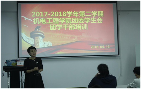 2018年4月13日下午,彩票平台 党总支副书记李密老师在机电楼B201室为学院团委学生会干部作关于如何做一名合格的学生干部的培训,参加人员有机电学院学生科徐沁怡老师、全体团委学生会干部。