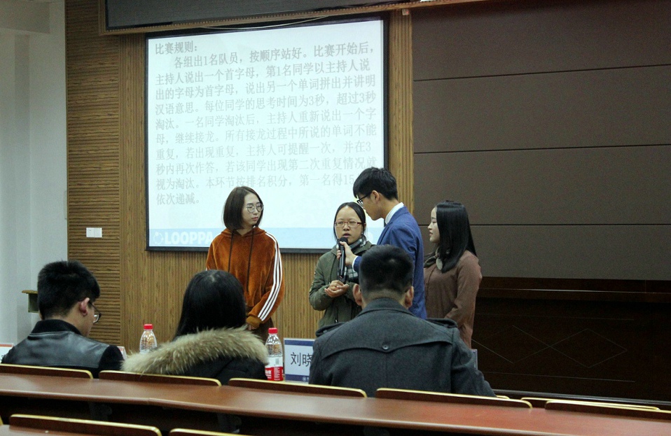 来自各个学院各个专业的同学们,带着对英语的热爱,积极参加到比赛之中。比赛中,十四支队伍激烈角逐难分伯仲,为我们展现了温大学子高超的英语水平以及对于英语学习的高度热情。场下观众也积极地参与,聆听并及时提出选手们的错误,一时间,全场洋溢着英语学习的热烈氛围。通过“记忆大爆炸”、“单词接龙”、“英语知识PK”等一系列紧张刺激的活动,同学们不但发挥了自己的英语特长,也很好地发现自身的不足并加以弥补,不断提高自身英语水平。