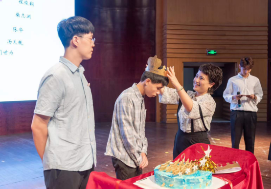 张祥雷老师作为新生班主任代表上台讲话,幽默风趣而不失严谨的讲话风格逗乐全场,并用自己的亲身经历给新生提出几点生活学习建议。