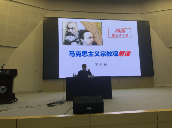 王柏民书记以马克思主义宗教观的哲学基础、马克思主义宗教观基本理论以及马克思主义宗教观中国化这三个方面进行阐述,用简介的语言,直观的图片指出,辩证唯物主义和历史唯物主义是马克思宗教观哲学基础的原理。王书记强调,“宗教不是鸦片论”,宗教是社会文化现象;尊重宗教信仰自由,要引导宗教与社会主义社会相适应,构建积极健康的宗教关系;宗教工作需要法治化;共产党员和共青团员要做坚定的无神论者,绝不能在宗教中寻找自己的价值和信念。作为新时代大学生,更要坚定理想信念,树立好正确的世界观、人生观、价值观,努力成为一个德智体美劳全面发展的社会主义建设者和可靠接班人。