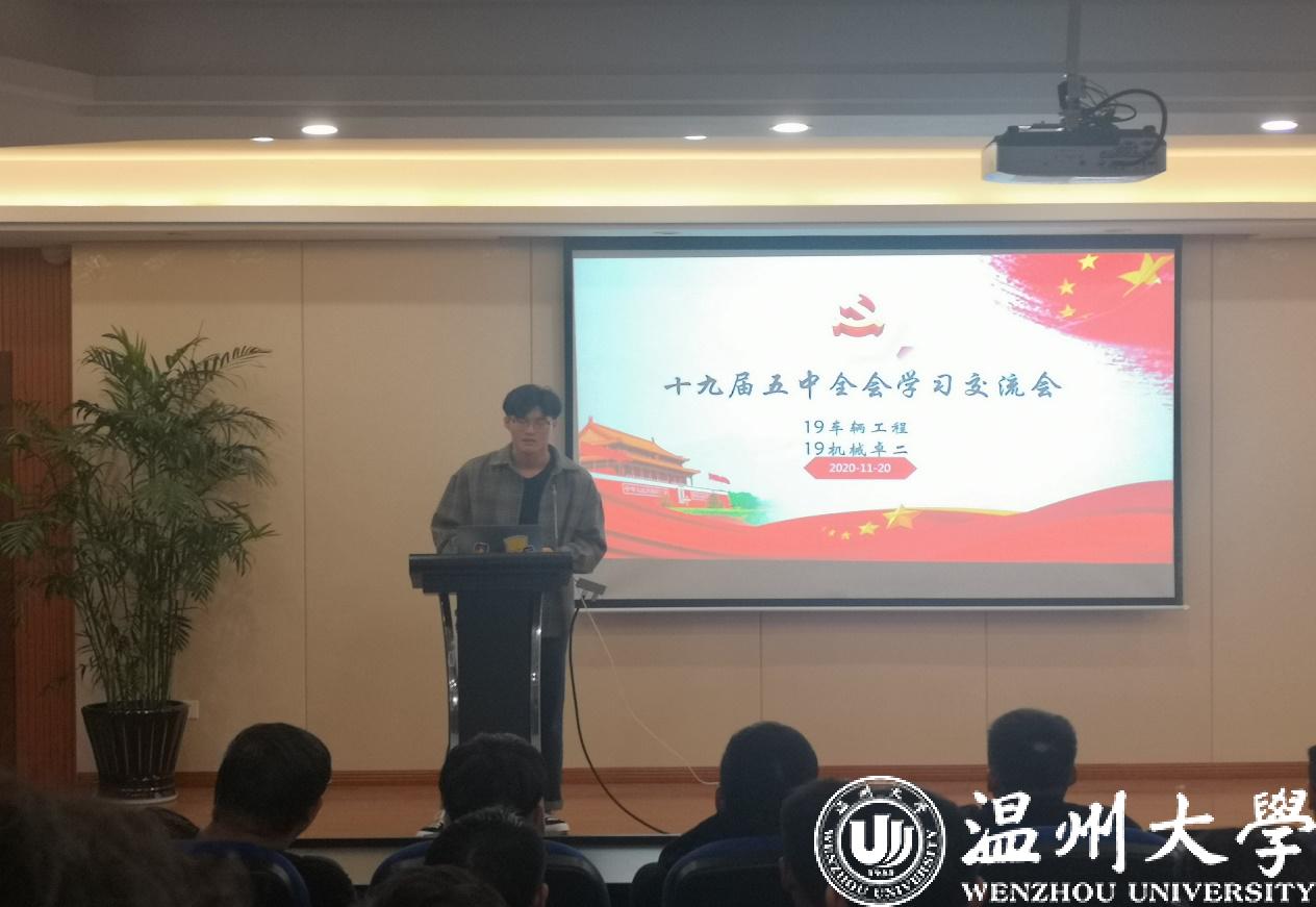 18级工业工程班在团支书刘琪同学的带领下,以十九届五中全会的基本情况、主要议程、公报解读以及十四个关键词为主要内容,对十九届五中全会进行了深度解读。19级工业工程班和19级机械工程卓工一班联合举办了“学习十九届五中全会精神,共筑新时代”团日活动。首先,分小组收集并共同观看视频学习,了解相关知识;进而开展趣味答题环节,调动同学参与积极性,加深对十九届五中全会基础知识的理解。20级机械工程卓工二班、三班则邀请到马克思主义学院潘玉驹老师,向同学们介绍了十九届五中全会的主要内容及思想精神。通过潘老师条理清晰的具体介绍,同学们纷纷表示对全会内容有了更深刻、更专业的认识。