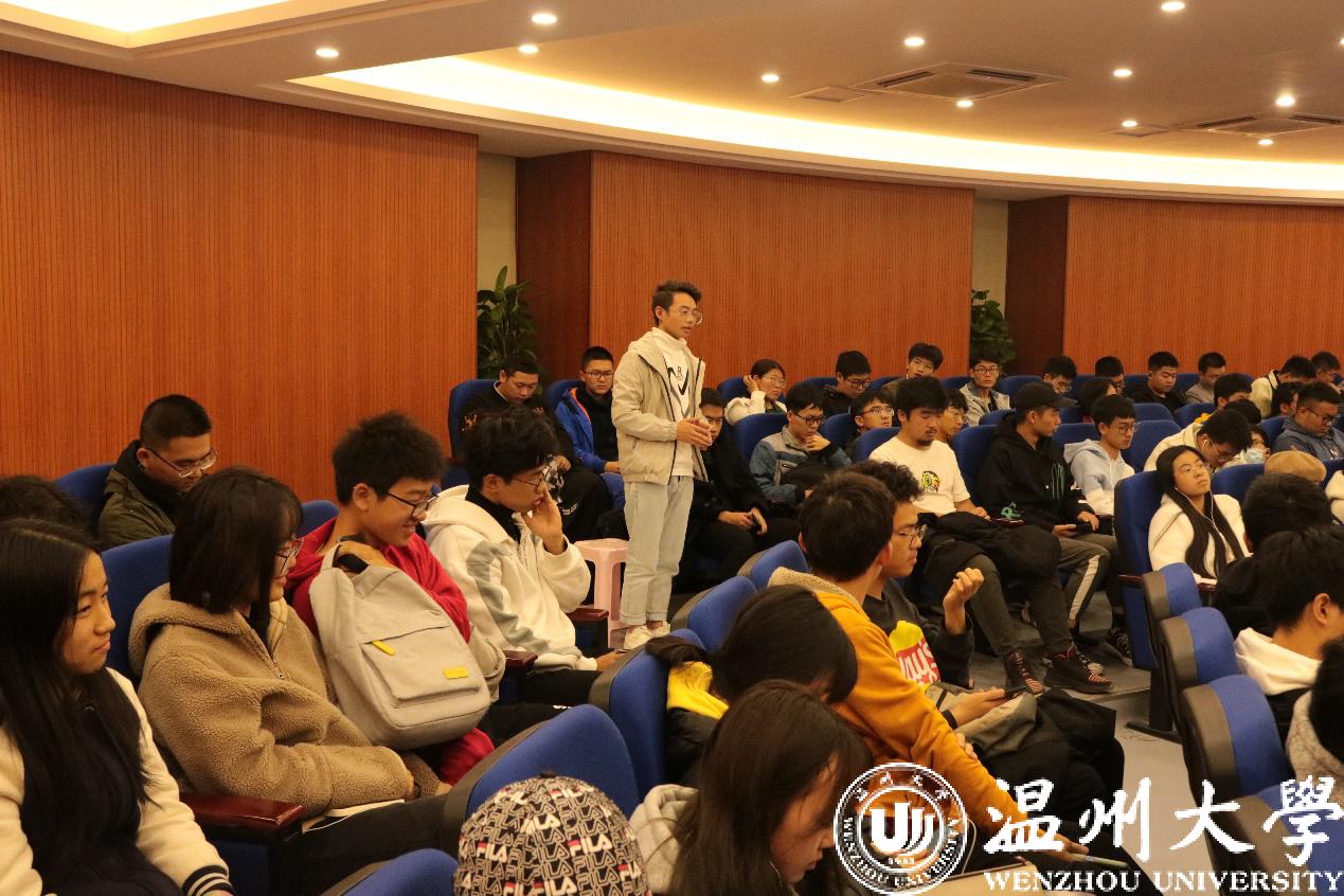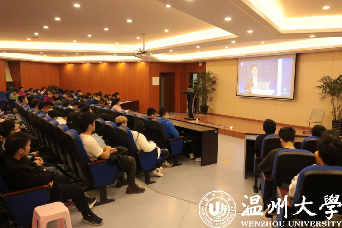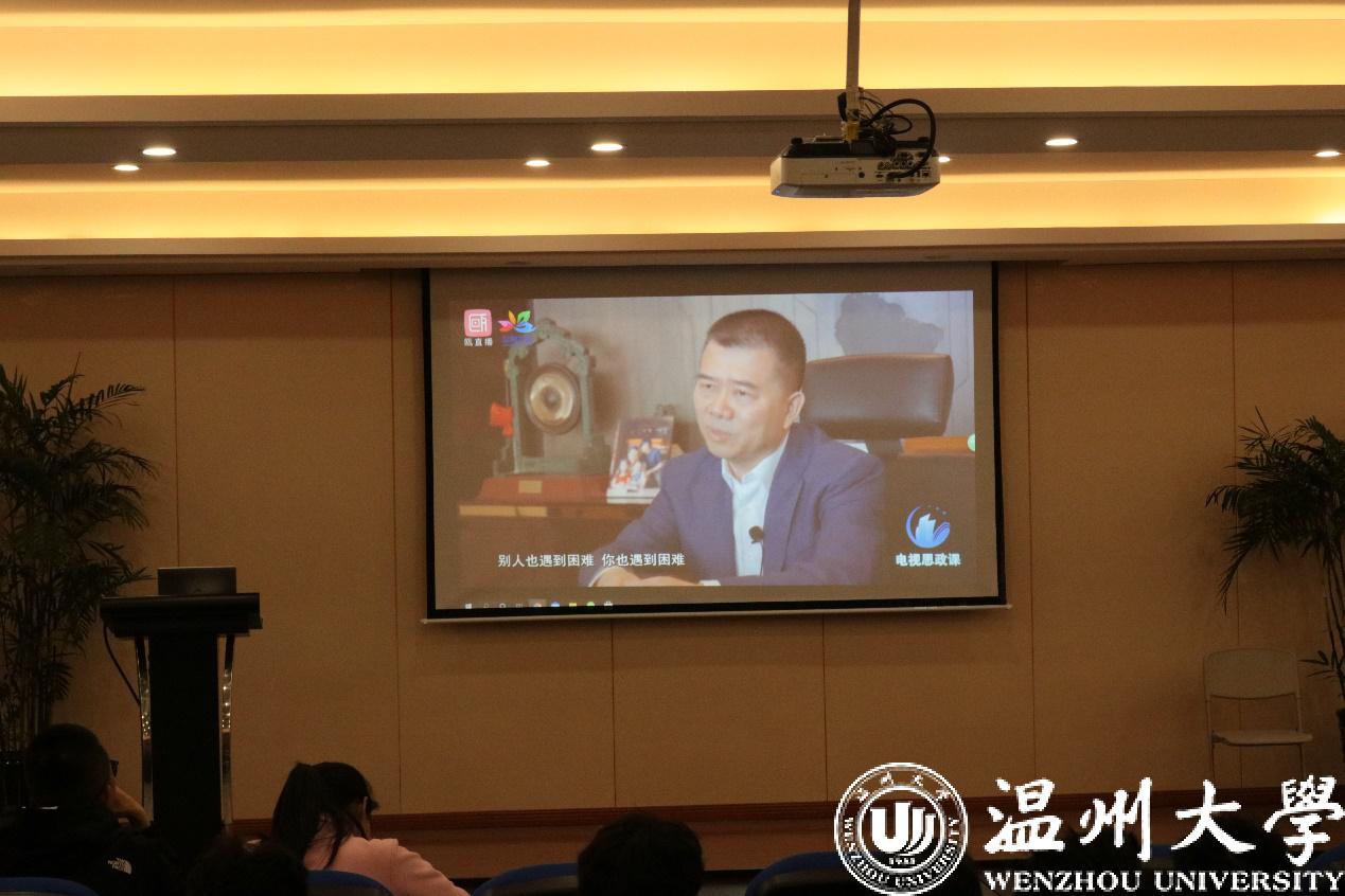 2020年12月5日晚,我院师生在机电楼6B309报告厅认真聆听了由温州大学党委书记谢树华、马克思主义学院副院长孙邦金、知名校友天正集团董事长高天乐、温州市委政研室综合处处长霓考梦主讲的《永嘉学派与新时代温州人精神》思政课。