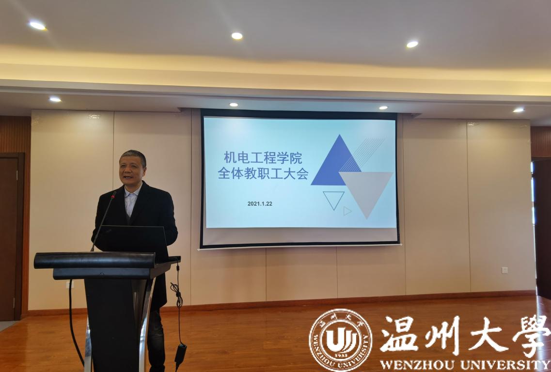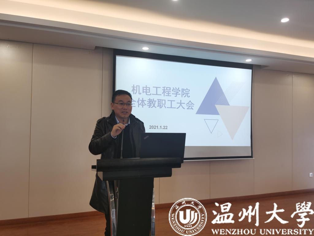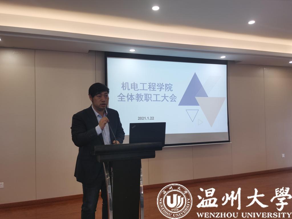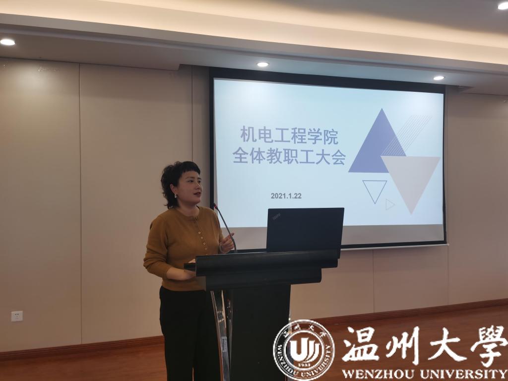 2021年1月22日,彩票平台 在6B309报告厅召开本学期期末全院教职工大会。学院全体教职工参加会议,学院党委书记周荣主持。