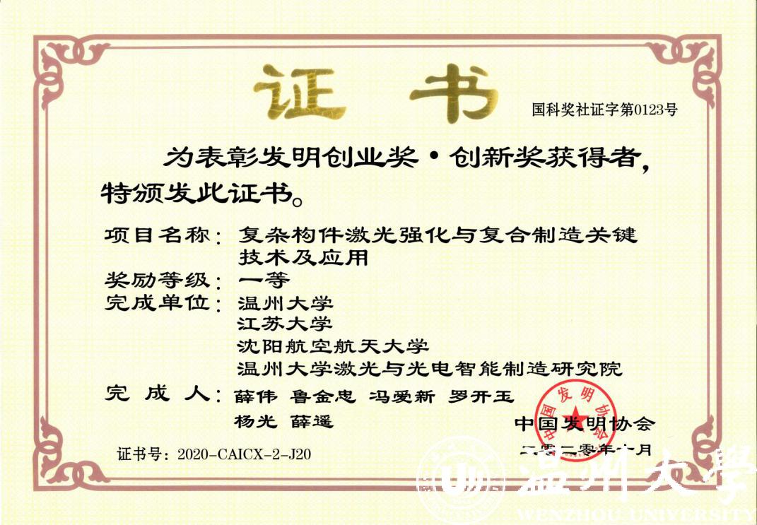 该项目由我校薛伟教授主持,温州大学、江苏大学、沈阳航空航天大学、温州大学激光与光电智能制造研究院等合作完成,主要围绕国家重大战略需求,通过理论计算与试验研究相结合,技术开发与重大工程应用相结合,在高端复杂构件激光冲击强化与复合再制造理论、关键技术和成套装备等方面取得了一系列创造性成果。理论突破了我国航空发动机领域一直存在的复杂构件激光强化和再制造难题,填补了国内空白。目前部分指标已经达到国际领先水平,被广泛应用在航空发动机、大飞机、汽轮机、重型机械和汽车零部件抗疲劳制造和再制造领域,引领着我国高端构件激光强化和再制造行业技术进步,提升了我国的国际竞争力。其中高端复杂构件激光冲击强化与复合再制造理论、关键技术和成套装备等获得发明专利47件,SCI论文被美国工程院院士、中国科学院院士、斯洛文尼亚双院院士等引用和评价。