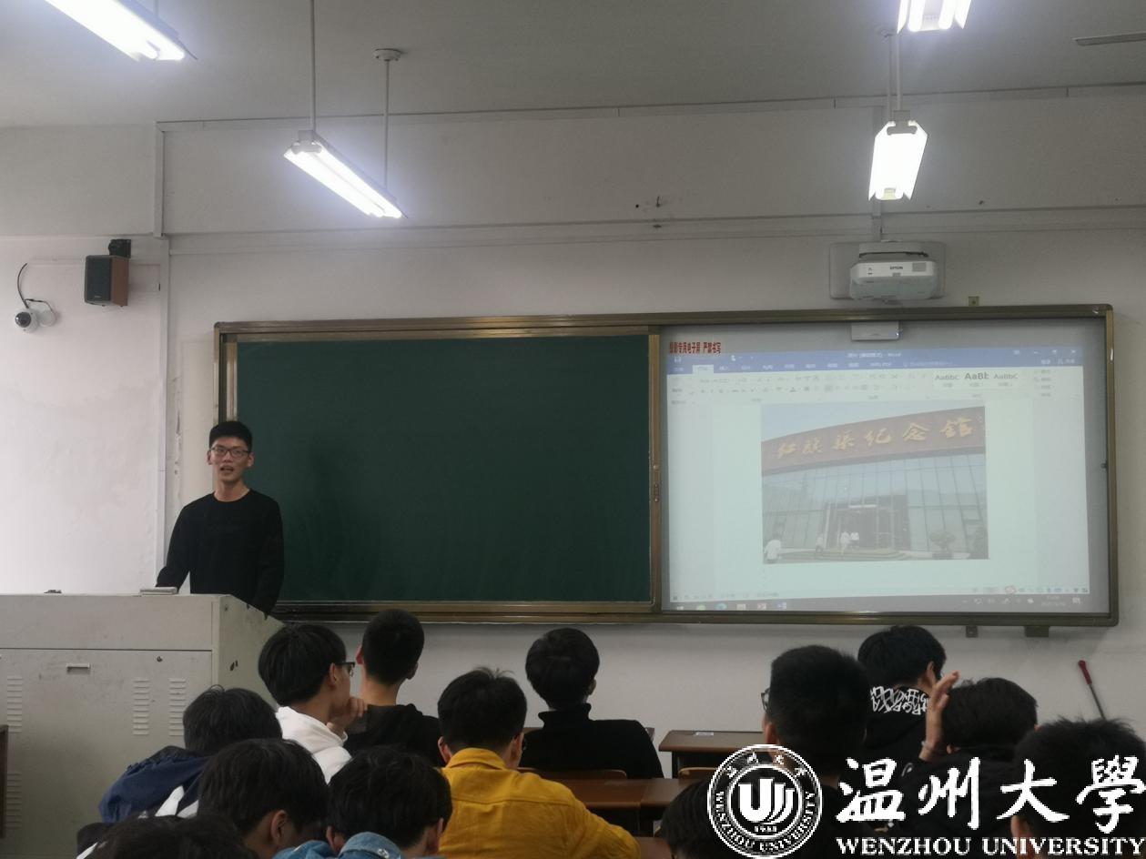 踏浪竞风流队重点介绍了浙江嘉兴南湖红船,甘肃陇南市两当兵变纪念馆等。引领大家深入了解南湖“红船精神”,感受红色精神的温暖与震撼。两当兵变纪念馆内的照片还原了当时革命先辈浴血奋战的场景,提醒大家更加铭记先烈们奋不顾身,保卫祖国的精神。实践队队长更是一展歌喉,引起全班同学的欢呼。
