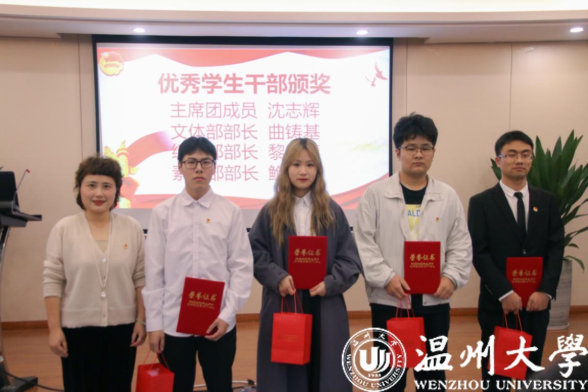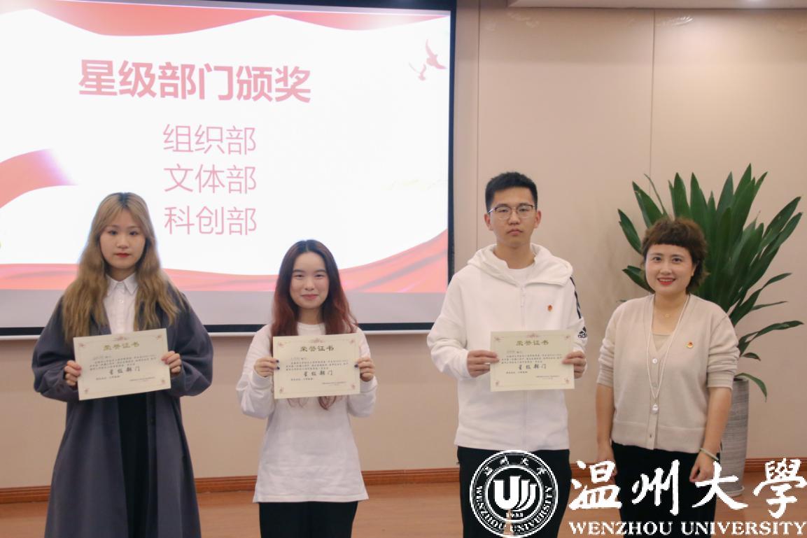 学院党委副书记黄玮,学工办全体辅导员以及团委·学生会全体成员参加本次大会。大会在嘹亮的中国共青团团歌《光荣啊!中国共青团》歌声中拉开帷幕。首先,对上学期工作中,表现积极,工作突出的集体及个人进行表彰,鼓励引导广大学生干部“不忘初心、牢记使命”,在新的学期中继续努力,取得更加优异的成绩。