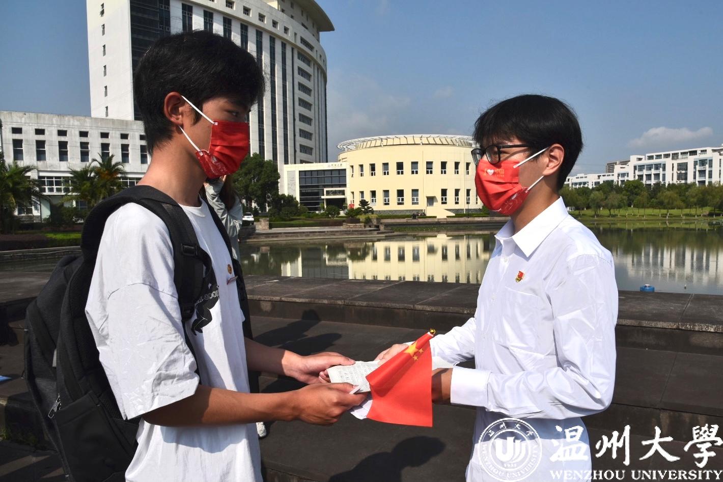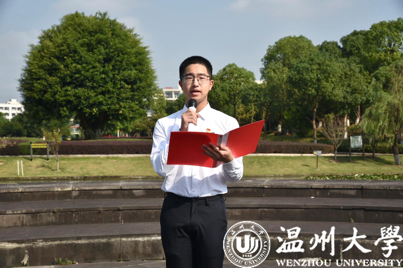 “今年是建党100周年,今天是新中国72周年华诞,我院200余名有意向加入中国共产党的优秀学子,在学院全体党员的见证下,在国内高校首个国旗教育主题广场——温州大学国旗广场递交入党申请书。这是一次很好的党史学习教育主题活动”,学院党建指导老师史凤娟激动地说:“同学们,同志们!‘奋斗是青春最靓丽的底色’,让我们如策马奔腾般奋勇向前,勇敢地去追梦,去圆梦吧!你们的未来,必将一片光明。”