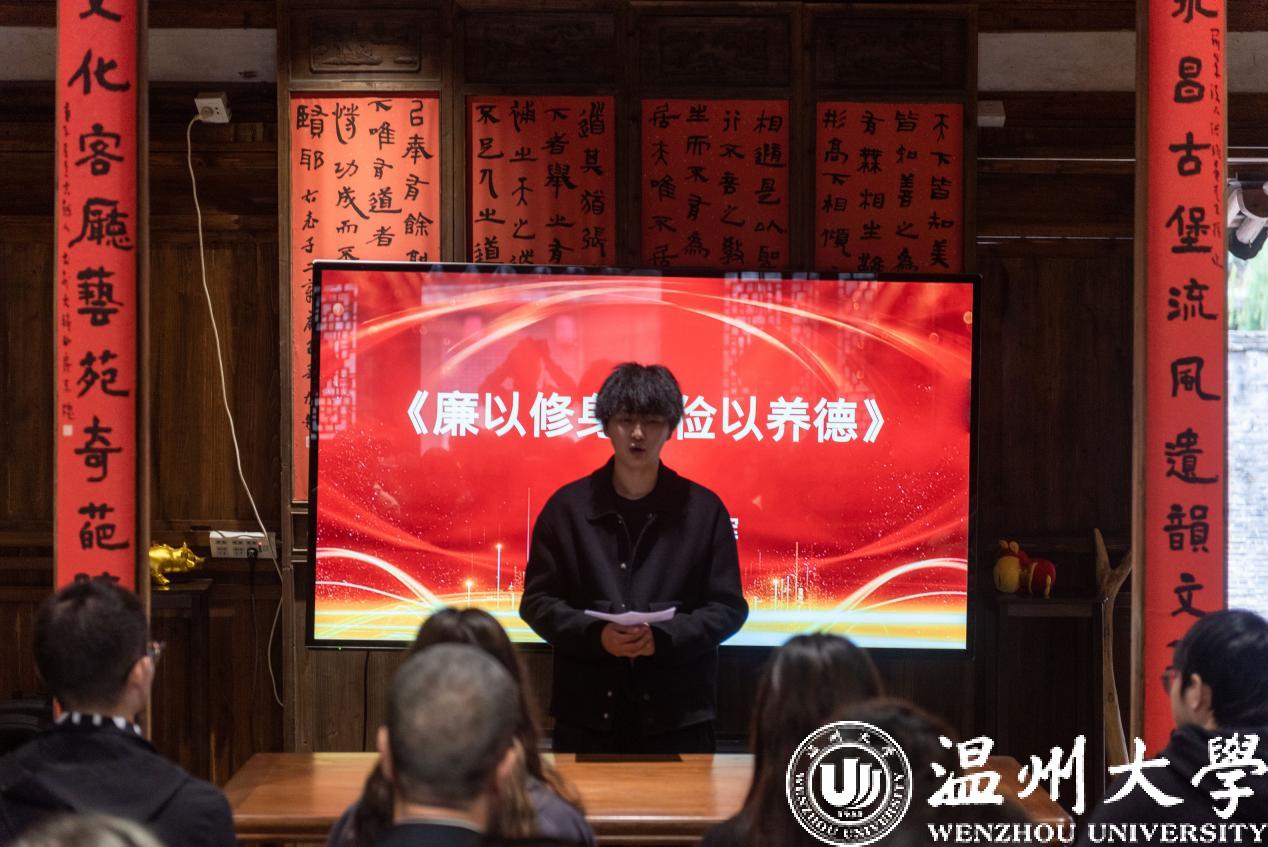 第二党支部黎雯婧同学带来《学勤廉典型,扬清风正气》的演讲,以刘伯温老前辈的故事,告诉大家什么叫“言廉为虚,身廉为标,心廉为本”。让清廉成为爱国之情、强国之志、报国之行的考核标杆,使清风正气蔚然成风。