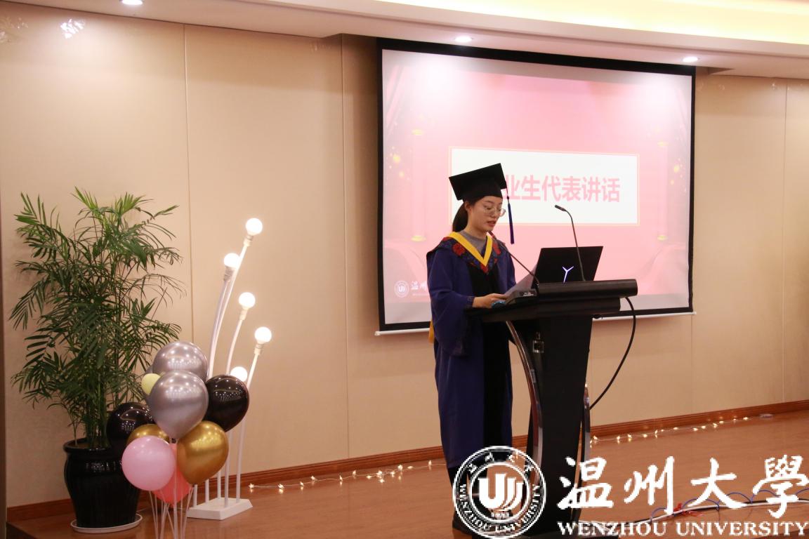 周宏明院长认真听取了毕业生们的发言,充分肯定了同学们朝气蓬勃和对梦想的追求,称赞大家是有理想、有格局、有情怀、值得信赖、值得期待的温大学子。他对毕业生们顺利完成学业表示祝贺,对同学们为学院发展提出的宝贵意见表示感谢,对大家即将开启新的人生旅程给予诚挚祝福。