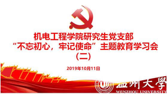 为积极响应贯彻院党委“不忘初心、牢记使命”主题教育活动,彩票平台 研究生党支部于10月11日20时在彩票平台 6B309会议室召开第二次主题教育学习会。彩票平台 研究生党支部书记刘焜同志、全体研究生党员、部分入党积极分子参加学习会。会议由研究生党支部副书记张玉朋同志主持。