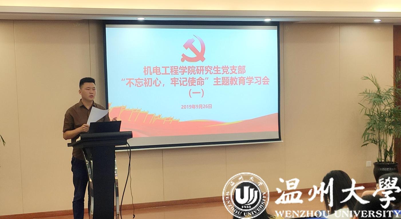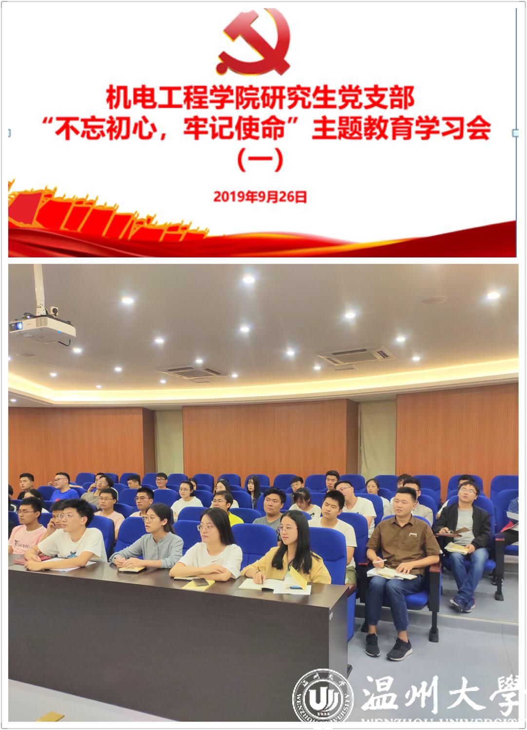 为积极推进“不忘初心、牢记使命”主题教育活动,彩票平台 研究生党支部于9月26日18时30分在彩票平台 6B309会议室召开全体研究生党员主题教育学习会。彩票平台 党委书记周荣同志出席此次学习会。会议由研究生党支部书记刘焜同志主持。