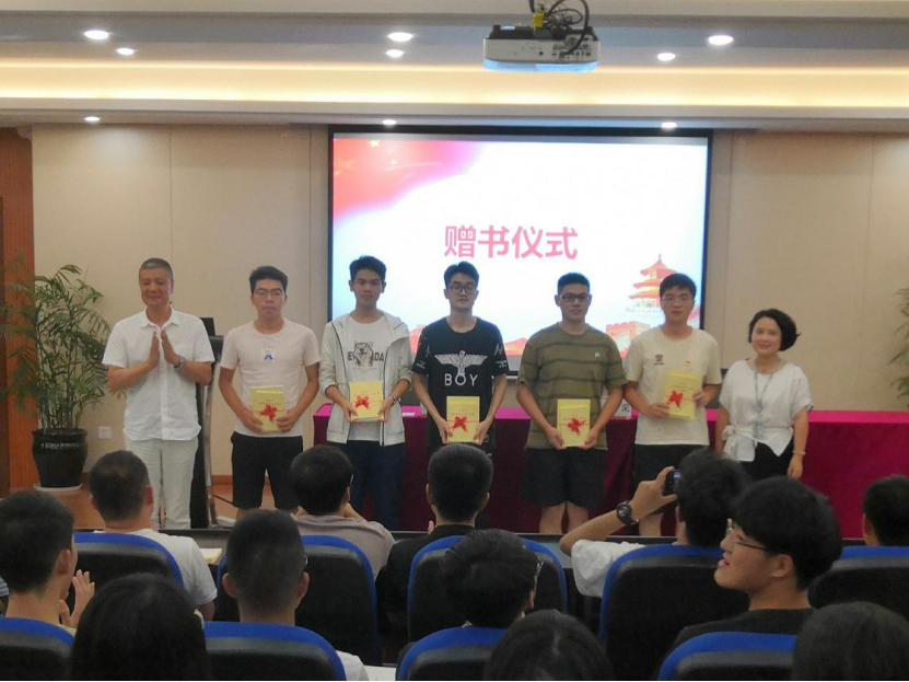 最后,书记周荣和副书记黄玮一同向学生党员赠送“两书一章”学习材料,勉励学生认真深入学习,做好主题教育活动。