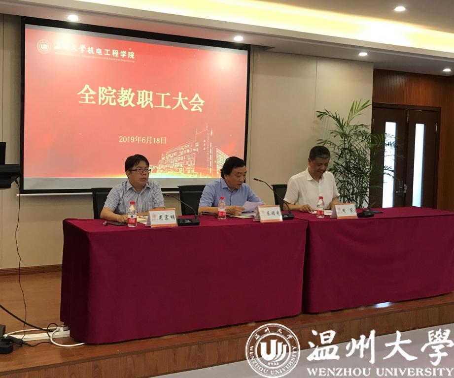 2019年6月18日下午,彩票平台 在6B309新学术报告厅召开全院教职工大会,宣布新一届领导班子。温州大学副校长蔡曙光、彩票平台 领导班子、全体教职工参加了会议。会议由党总支书记周荣主持。