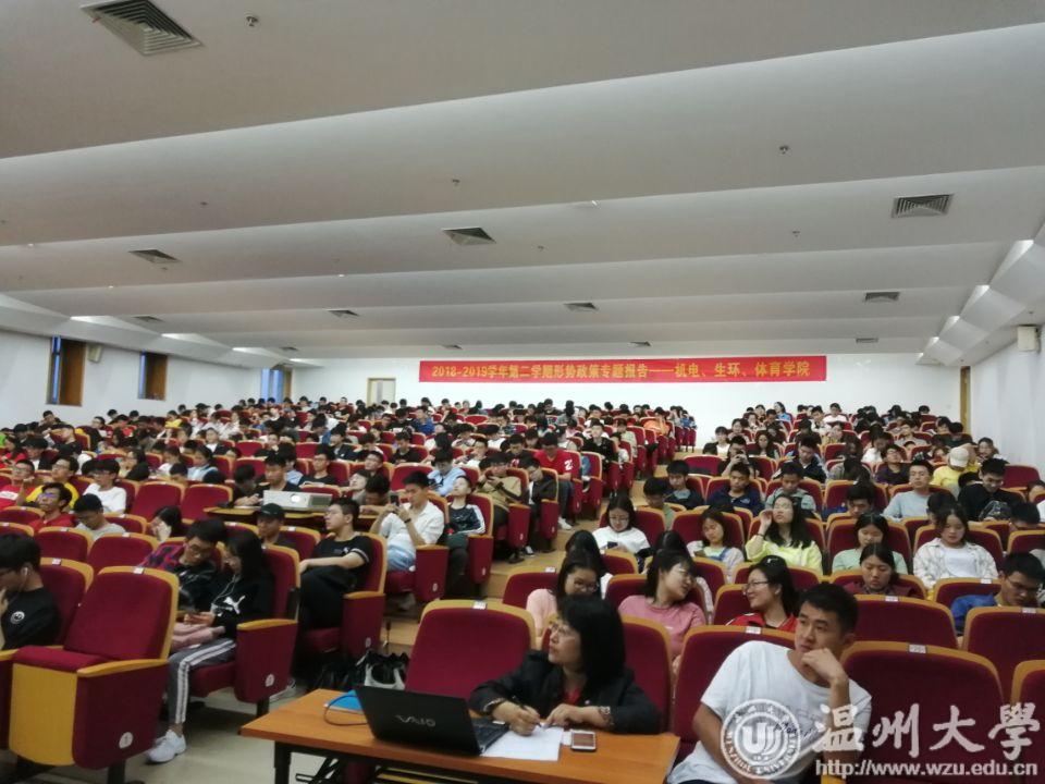 2019年5月28日18:30,彩票平台 、生命与环境科学学院、体育学院在温州大学步青厅共同开展了2018-2019学年第二学期形势政策课。本次特别邀请了马克思主义学院张小燕教授为三个学院的同学开展《红色文明在瓯越》主题的形势政策报告讲座。