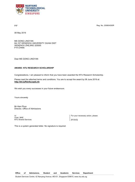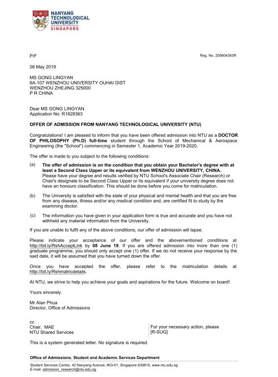 彩票平台推荐-彩票平台 15级机械工程(国际化)专业本科生龚玲艳,在我校李子瑞教授的精心培养和指导下,成功获得新加坡南洋理工大学博士录取(机械与航天航空工程学院),并获该校全额奖学金(NTU RESEARCH SCHOLARSHIP)。