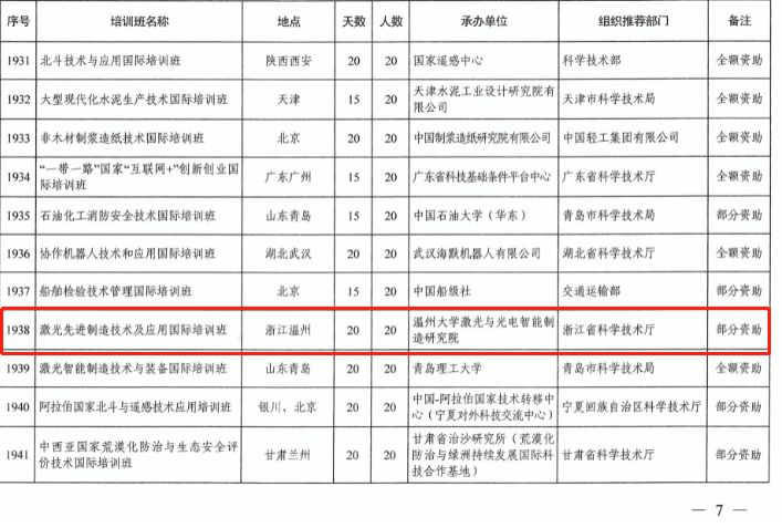 【喜讯】温州大学激光与光电智能制造研究院“激光先进制造技术及应用国际培训班”入选科技部2019年度发展中国家技术培训班项目
