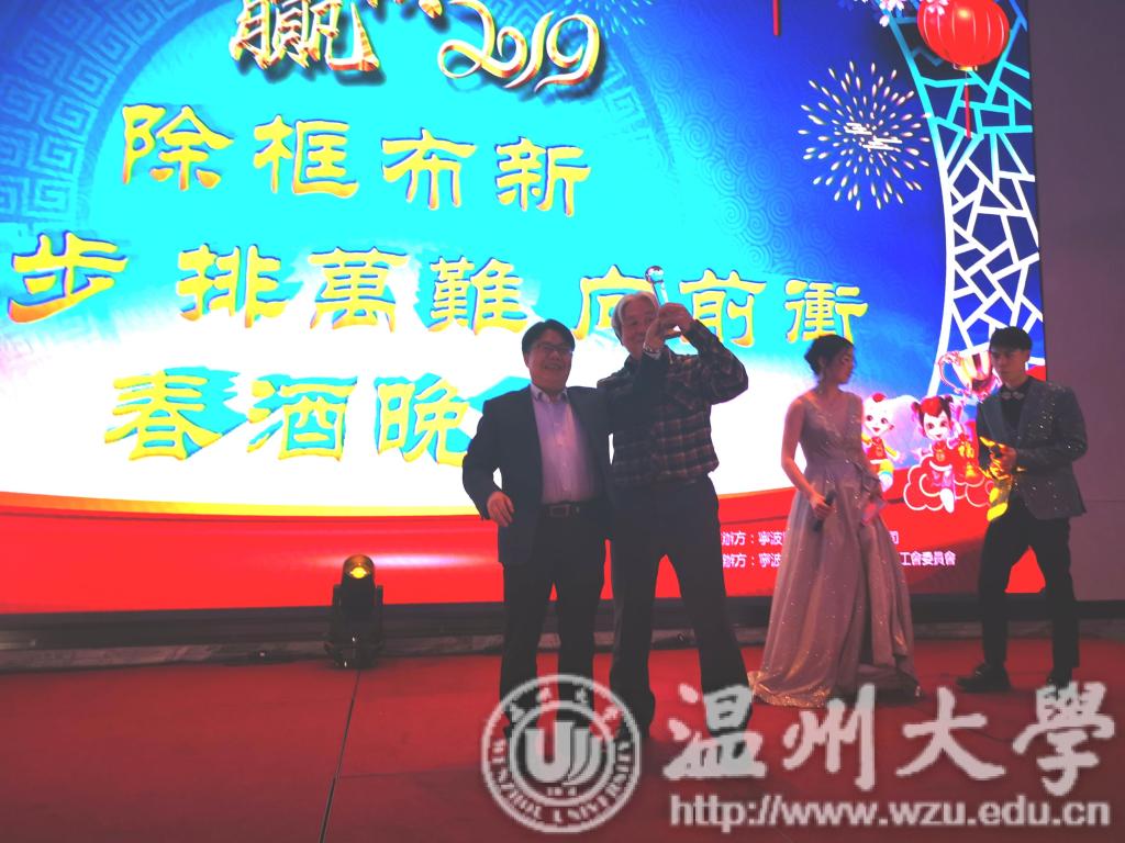 当晚还受邀参加该企业《迎战2019除框布新,迈大步,排万难,向前冲》春酒晚会,周宏明院长致辞并代表学院赠送“TSE”教育基金纪念奖杯。