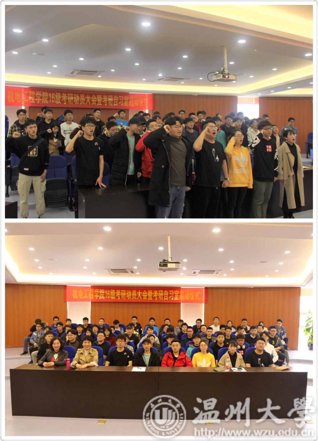 为调动我院学生的考研积极性, 2019年3月13日下午15点在彩票平台 B309报告厅召开了彩票平台 16级考研动员大会暨考研自习室启动仪式。机电工程学院党总支副书记李密、学生科辅导员郑妤及16级考研同学参与了本次大会。18级刘群慧同学主持.