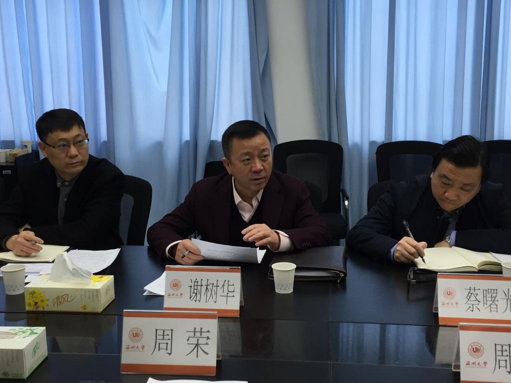 最后,谢树华书记作重要指示。他指出,机电学院建设发展卓有成效,校地合作有重大突破、学科建设成效显著,同时学院领导对学校的发展建议既有高度又有深度,既有针对性、也有可操作性。他也对学院发展提出了几点希望和要求:一要强化学院办学主体责任,要做到环境育人、要走在学科建设的前沿、要打造特色专业;二要积极探索校地合作的有效形式,把对外合作与学校育人结合起来,使两者相互促进、共同提高;三要积极参与、推进学校改革创新,积极建言献策,为温大的发展做出更多贡献。