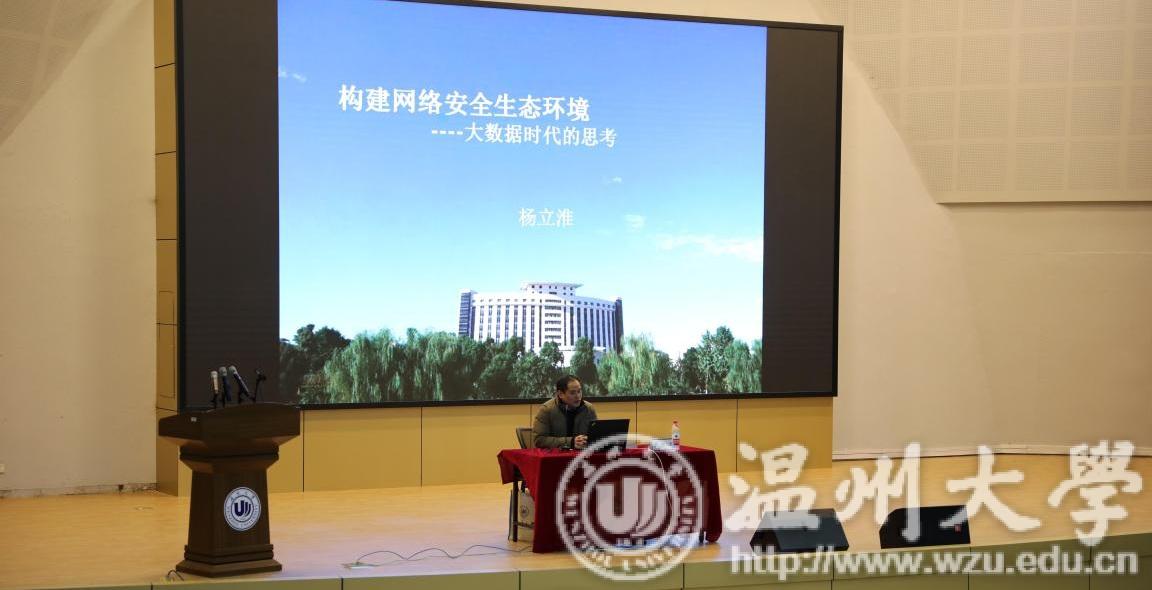 为了提高同学们对网络安全的意识,于2018年12月11日晚,我院18级全体同学在南校9号楼报告厅聆听了形势与政策课。其中,第二场讲座由教师与教育学院党委书记杨立淮执讲,杨书记向大家讲授了关于构建网络安全生态环境在大数据时代下的思考。