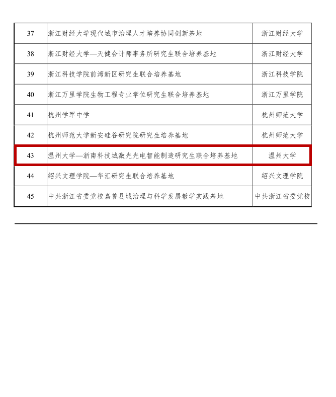 喜报:温州大学—浙南科技城激光光电智能制造研究生联合培养基地 入选浙江省研究生联合培养基地