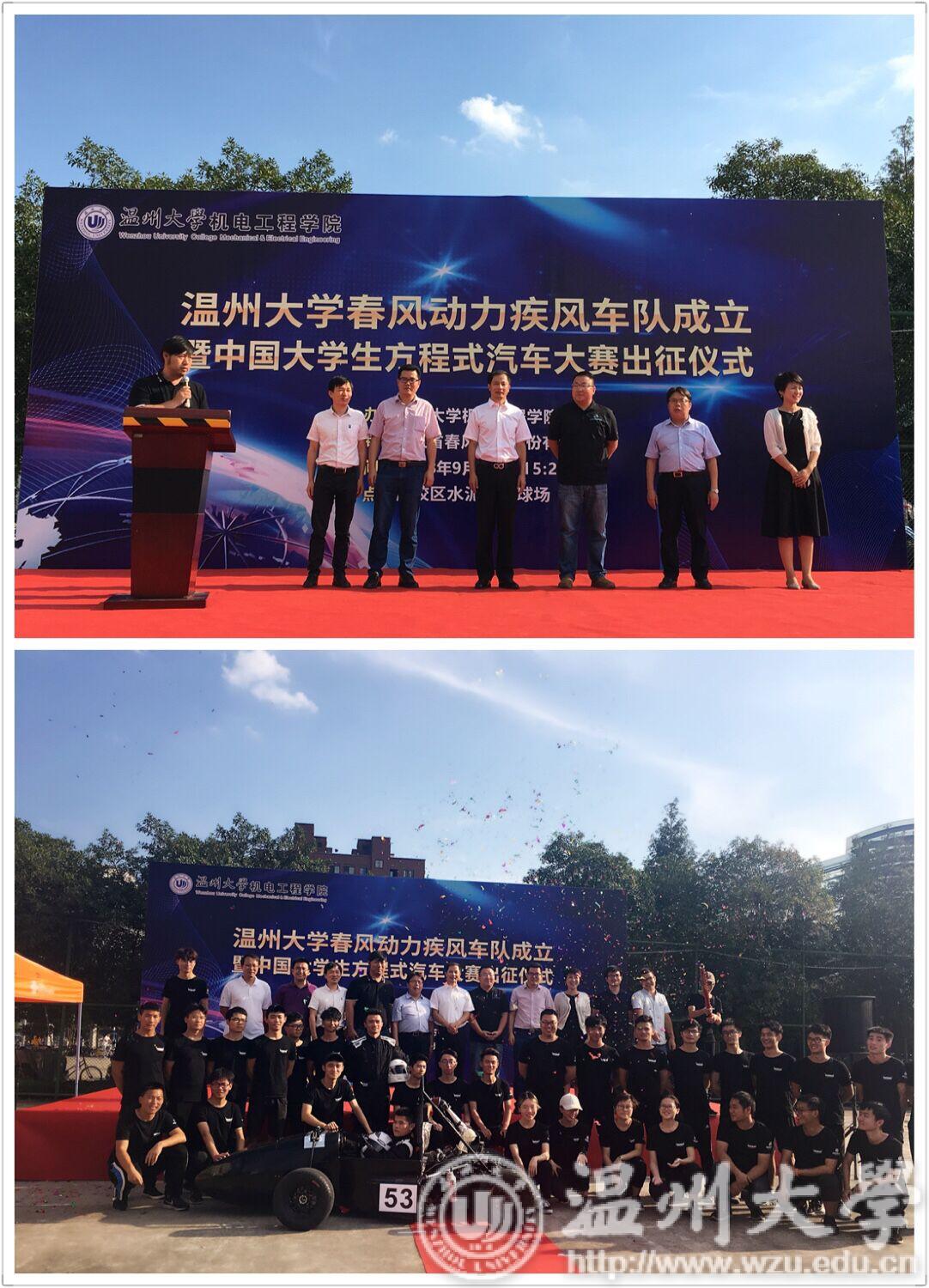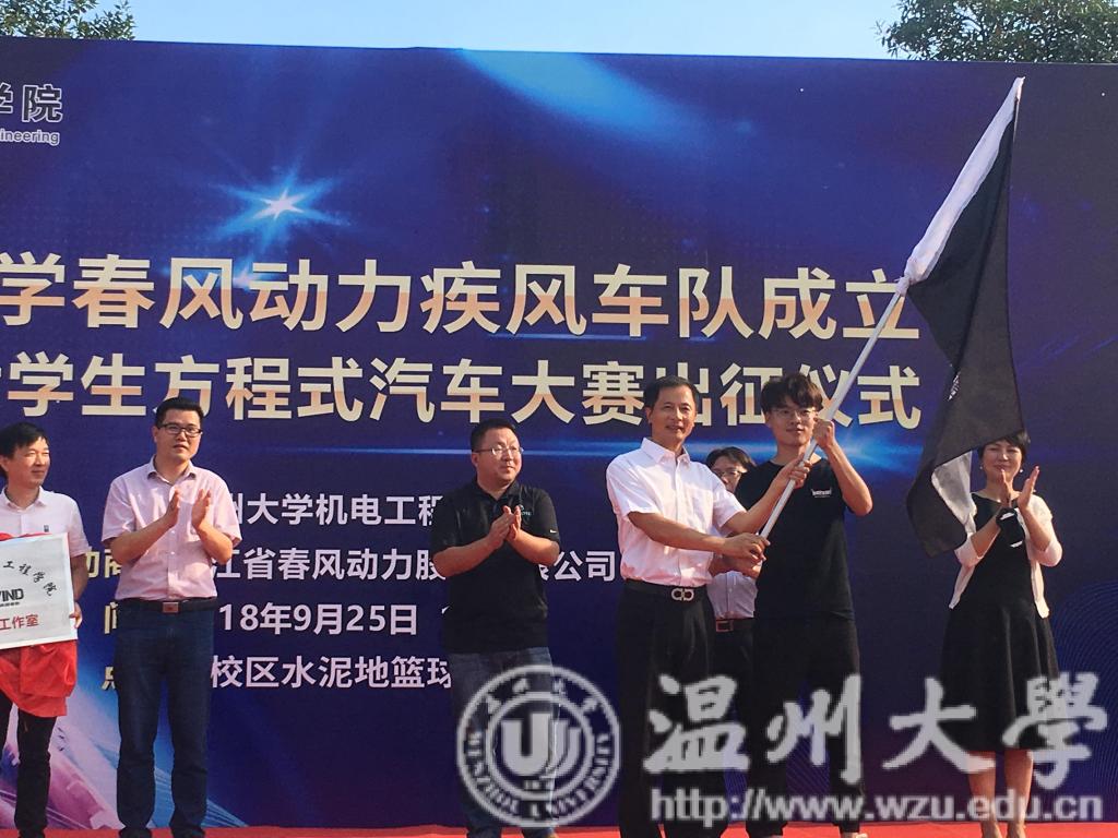 2018年9月25日15时10分,由彩票平台推荐-彩票平台 主办的温州大学春风动力"疾风车队"成立暨中国大学生方程式汽车大赛出征仪式在南校操场篮球场举行。