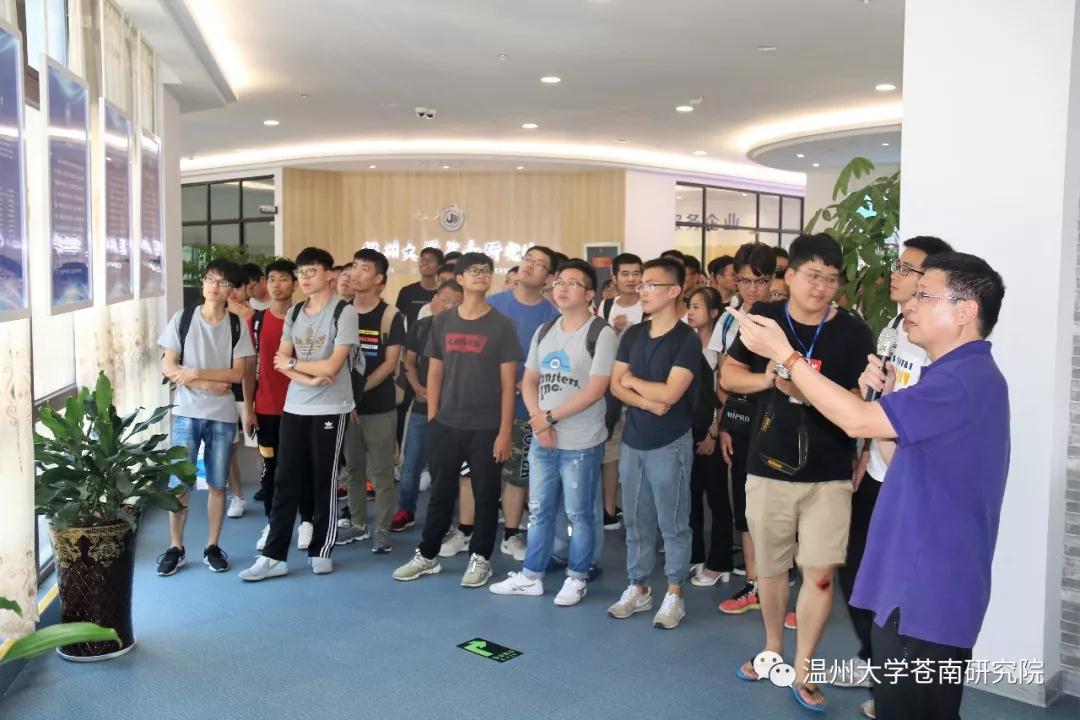 2018年9月20日,彩票平台推荐-彩票平台 2018级研究生来到温州大学苍南研究院参观学习,研究院张淼副院长、章锋高工带领参观。