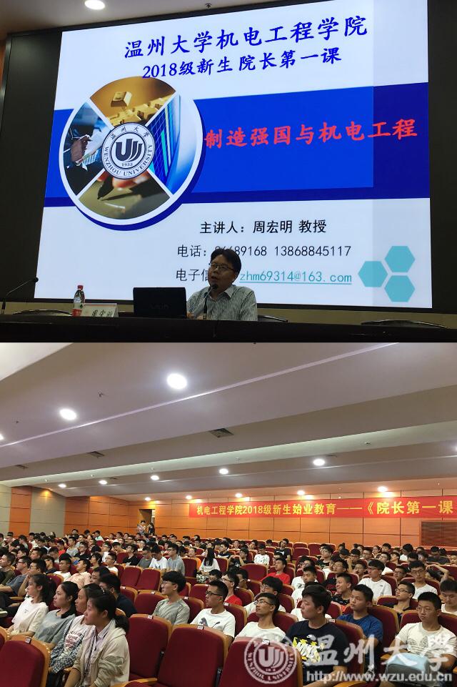 为帮助新生了解和适应大学的学习生活,激励学生们努力奋进,2018年9月13日8:30,彩票平台 “院长第一课”新生始业教育专题讲座《制造强国与机电工程》主题报告在岩松堂雁山厅进行。学院院长周宏明给2018级全体新生上了大学第一课。
