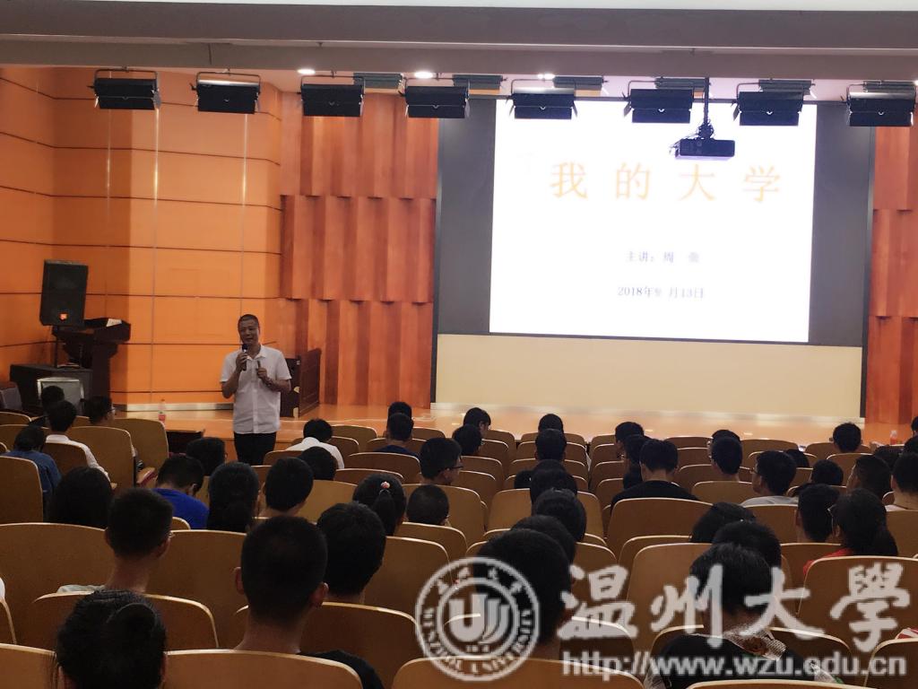 此次讲座围绕着“大学生将如何度过大学生活”展开。周荣书记分别从“什么是大学”、“大学的功能”、“大学生如何生活”、“大学生素质和能力”以及“做个读书人让大学更有意义”五大点详细进行讲解。