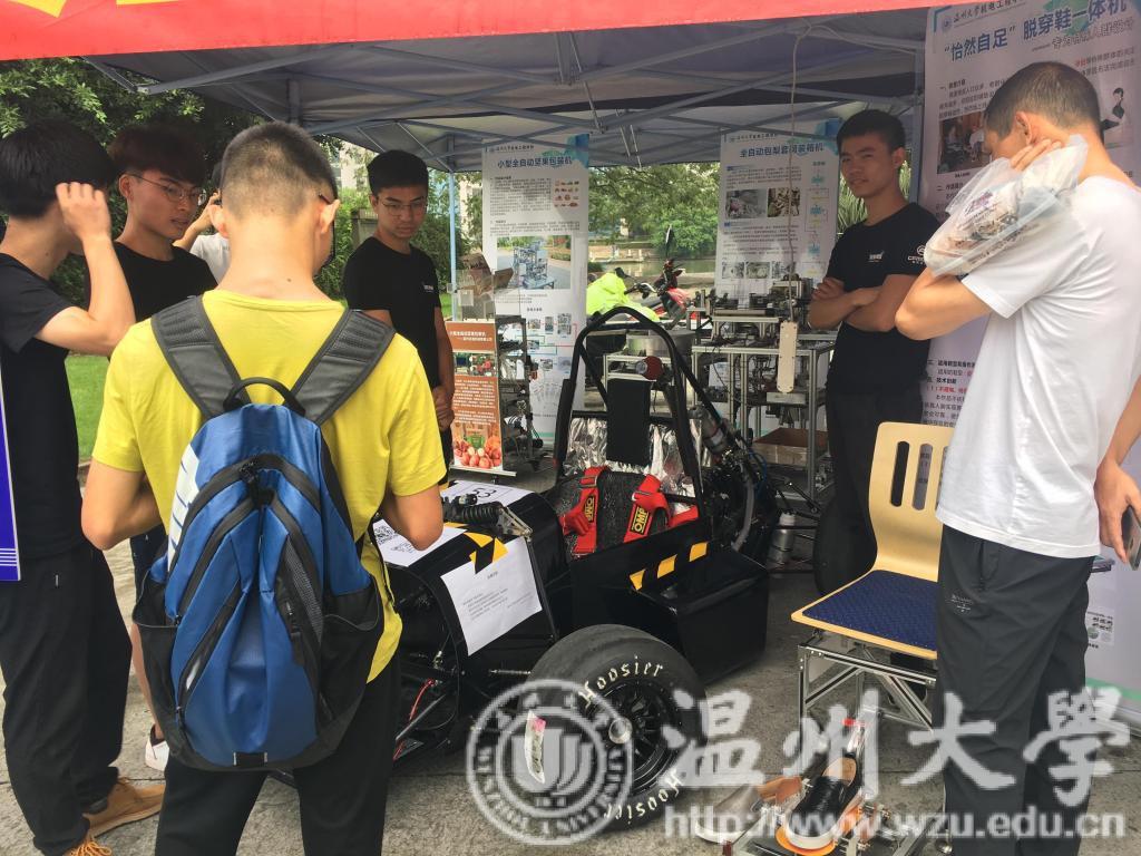 在报到处的另一侧,我院优秀学子的科技作品也吸引了许多新生及家长驻足欣赏,从他们眼中可以看出他们对那些制作出作品的优秀学子们的那一份敬佩。这其中也有我校党委书记林娟娟的身影,她愉悦地与现场的学子进行交流,脸上写满了对我院美好未来的期许。