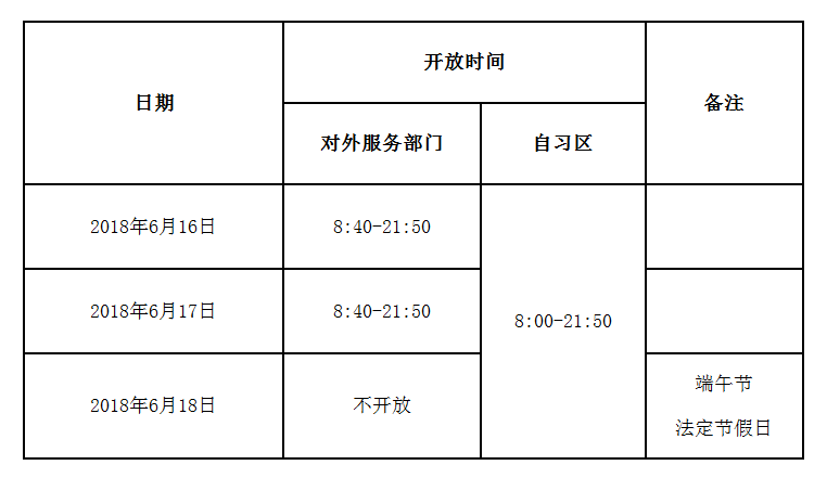 根据本学期校历表安排,图书馆端午节期间开放安排如下: