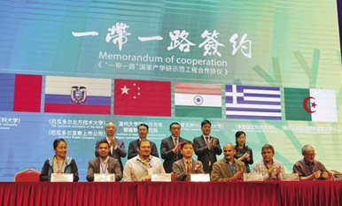 温州大学激光与光电智能制造研究院分别与五个国家的高校和上市公司等六家单位签订产学研合作协议。 周凌慧 摄